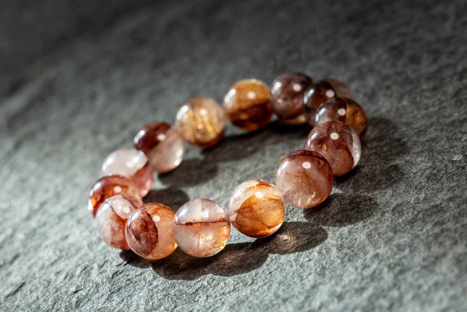 Koi flower agate, patterned with colors reminiscent of koi fish and blossoms, is celebrated as a stone of harmony and fortune. A bracelet of koi flower agate is said to attract good luck, encourage resilience, and promote joyful energy. It symbolizes perseverance and balance, like koi swimming gracefully against currents. Its vibrant patterns reflect individuality and creativity. Wearing koi flower agate is a charm of optimism, vitality, and harmony.