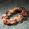 Koi flower agate, patterned with colors reminiscent of koi fish and blossoms, is celebrated as a stone of harmony and fortune. A bracelet of koi flower agate is said to attract good luck, encourage resilience, and promote joyful energy. It symbolizes perseverance and balance, like koi swimming gracefully against currents. Its vibrant patterns reflect individuality and creativity. Wearing koi flower agate is a charm of optimism, vitality, and harmony.
