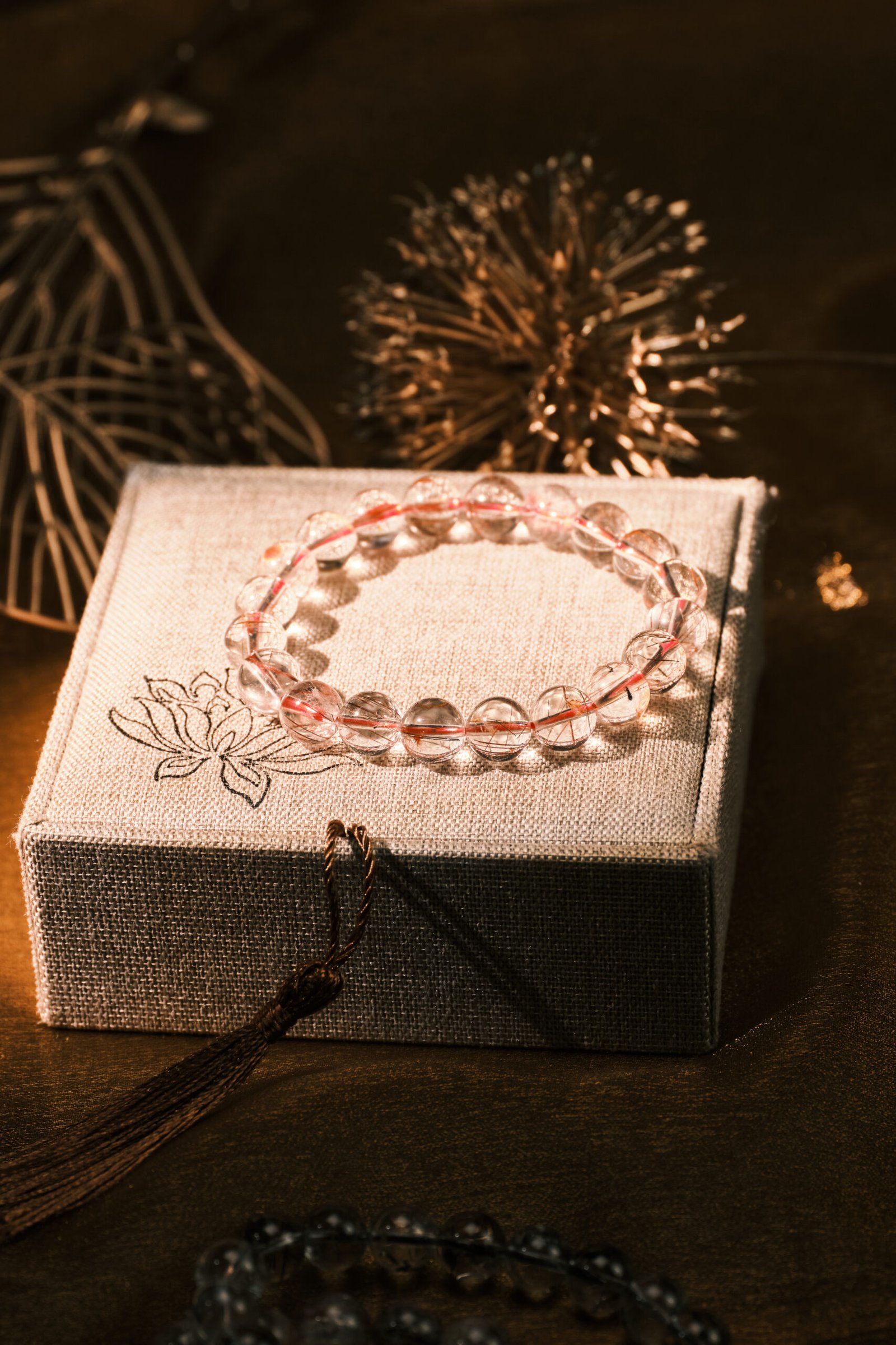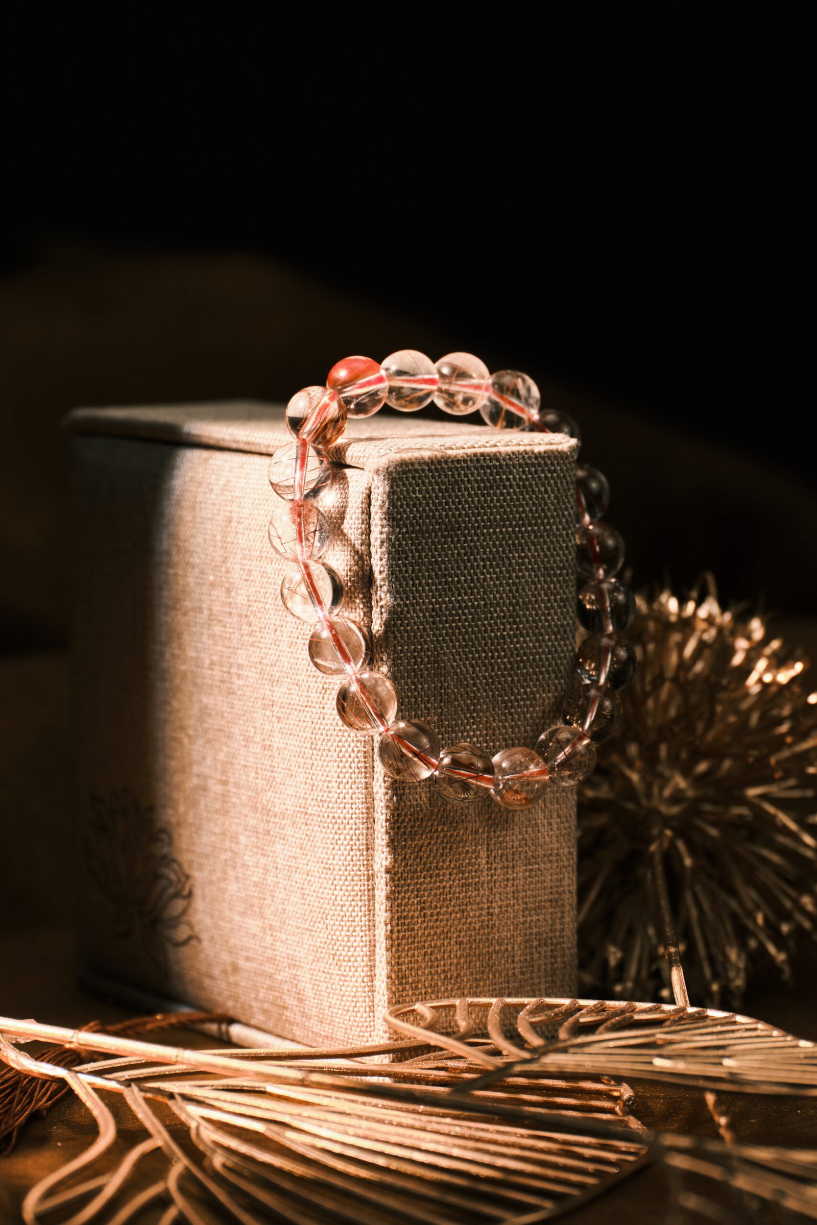 Red rutilated quartz sparkles with fiery red threads inside clear quartz, symbolizing vitality and passion. A bracelet made from this stone is believed to awaken creativity, enhance motivation, and energize the spirit. It is often associated with emotional healing, helping release fears and encouraging courage in new endeavors. The vivid red inclusions inspire action and boldness, reminding the wearer of life’s vibrancy. Its unique beauty combines elegance with power. Red rutilated quartz is a talisman of energy, drive, and renewed confidence.